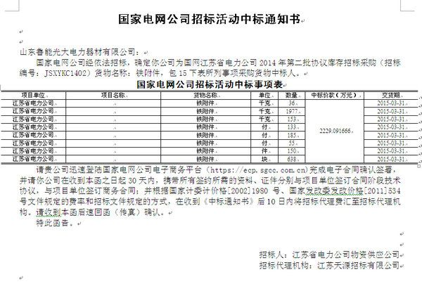 國家電網公司招標活動中標通知書 2016-2-16 本文被閱讀 2641 次