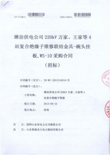 復合絕緣子維修聯結金具-碗頭掛板,WS-10采購合同